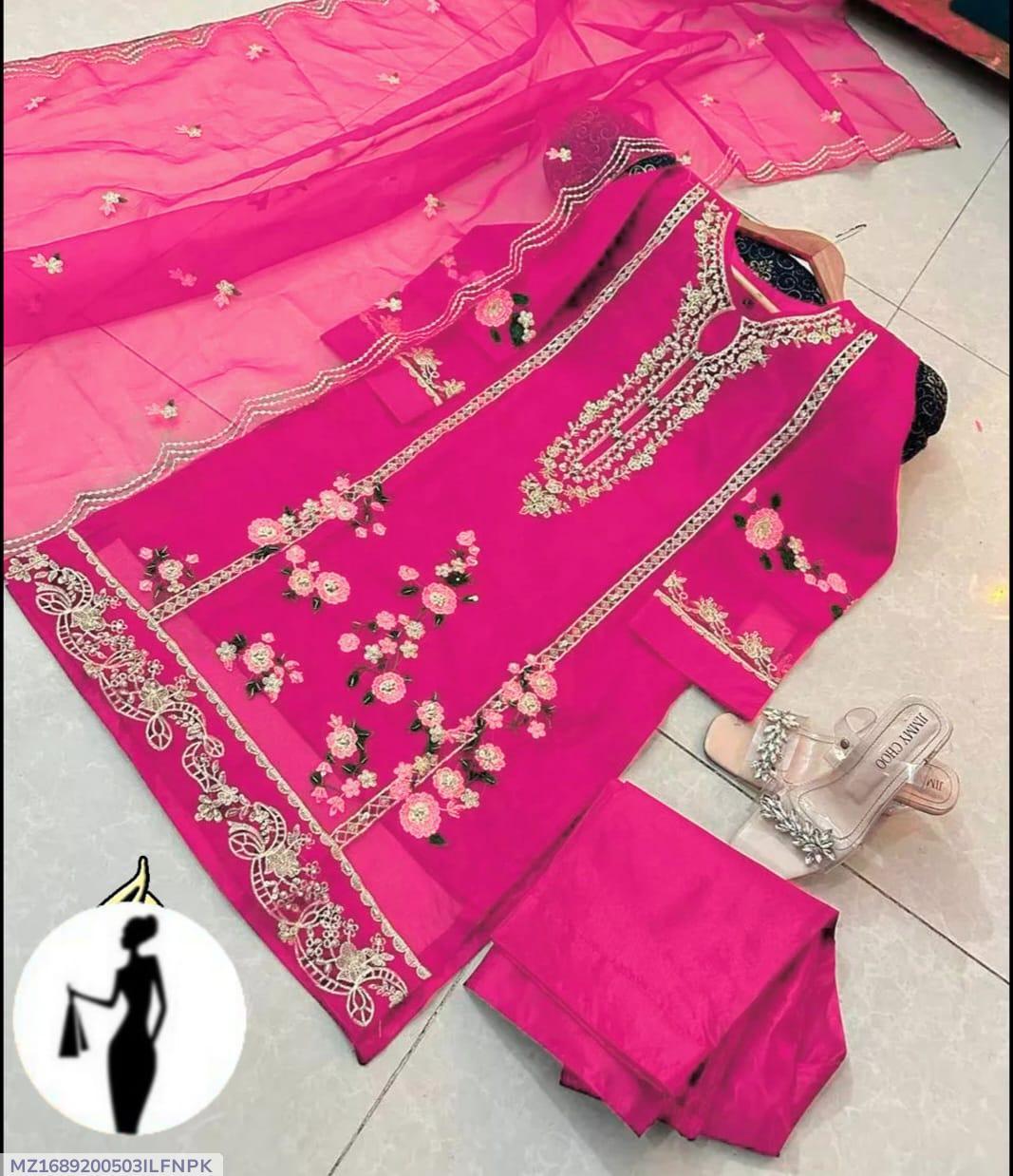 3 Pcs Women's Stitched Organza Embroidered Suit