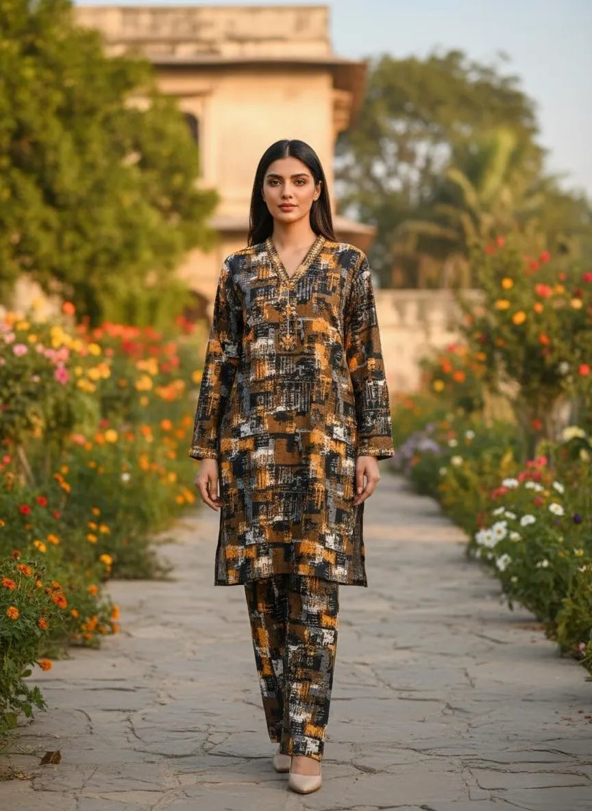 Winter Collection 2 Pcs Stitched Micro Polo Cotton Women Dress Marina Wool Specially