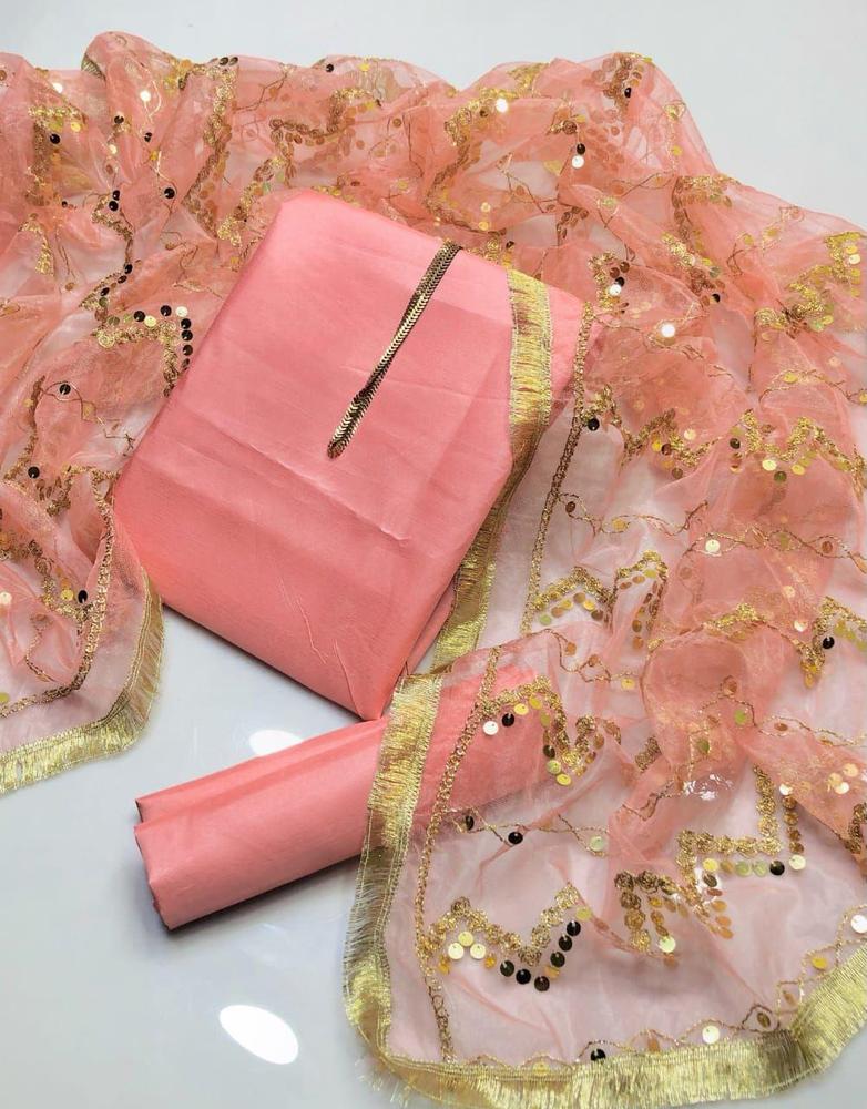 • Fabric: Silk• Pattern: Plain• Shirt: Plain• Back: Plain• Trouser: Plain• Dupatta: Net Gota Work• Number Of Pieces: 3 Pcs• Package Includes: 1 x Shirt, 1 x Trouser, 1 x Dupatta• Shirt Cutting: 2.5 Meter• Trouser Cutting: 2.5 Meter• Dupatta Cutting: 2.5 Meter• Note: There might be an error of 1-3 cm due to manual measurement, and slight color differences may occur as a result of varying lighting and monitor effects.• Product Code: MZ85520159ZACN